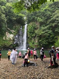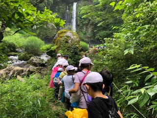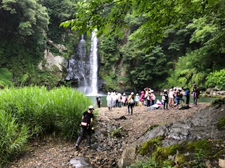 滝の前で学級ごとに写真を撮って、宿舎に向かいます。