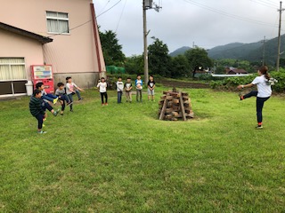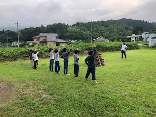 ファイヤー係が、キャンプファイヤーに向けてリハーサルをしています。みんな一生懸命でよく仕上がっています。本番が楽しみです。
