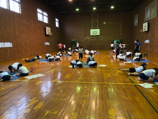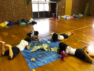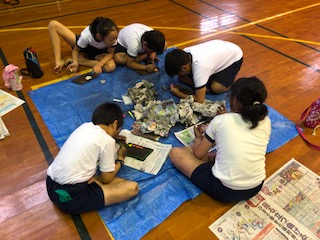 20分ほど板を磨いた後、板に塗料で林間学習の思い出などを文字や絵でかいていきました。林間学習の素敵なお土産の1つとなりました。