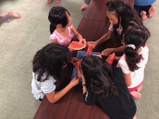 表彰式の後には、宿舎の方に用意していただいたスイカを食べました。子供たちは大満足のようでした。