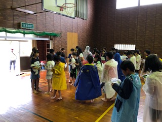 宿舎に戻り、作った焼き板を持って、クラスごとに写真を撮りました。
