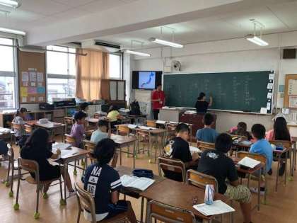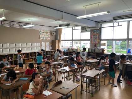 今日から、夏期学習・水泳指導が始まります。学習と水泳指導の午前中3時間です。水泳指導では、いつもの1学年ではなく、低(1・2年)中(3・4年)高(5・6年)の2学年ずつでプールに入っています。