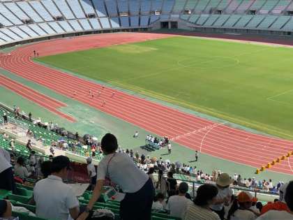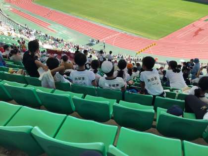 本日の午前中、ヤンマースタジアム長居で、大阪市立の小学校に通う児童が参加する、大阪市小学生スポーツ交流会行われました。本校からも参加を希望した4〜6年生の児童が、100メートル走に出場しました。とても暑い中でしたが、子どもたちは自分の持てる力を精一杯発揮し、全力でゴールに向かって走っていました。暑さの関係で、100メートル走の後に予定されていたリレーは中止なりましたが、出場した子どもたちにとっては、夏休みの大切な思い出の一つとなったことと思います。