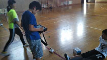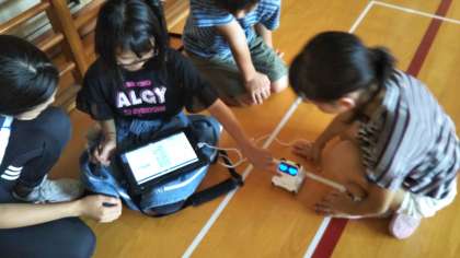 タブレット端末のアプリを使って、Codyを動かす命令(プログラム)を入力し、コースを走らせました。