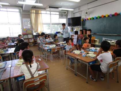 給食を楽しく食べました。
