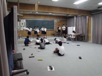 今日の5時間目、来週金曜日に行われる『赤おに交流会』にむけての練習をしました。『赤おに交流会』は、赤おに作業所の方との触れ合いを通して、障がいや障がいのある人への理解を深め、みんなが暮らしやすい社会を築いていこうとする態度を育むために毎年行われています。