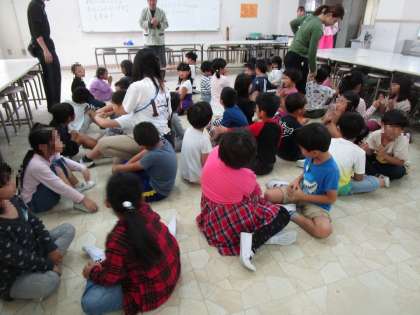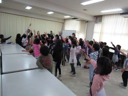 子どもたちは、韓国朝鮮の挨拶やジャンケン、歌などを