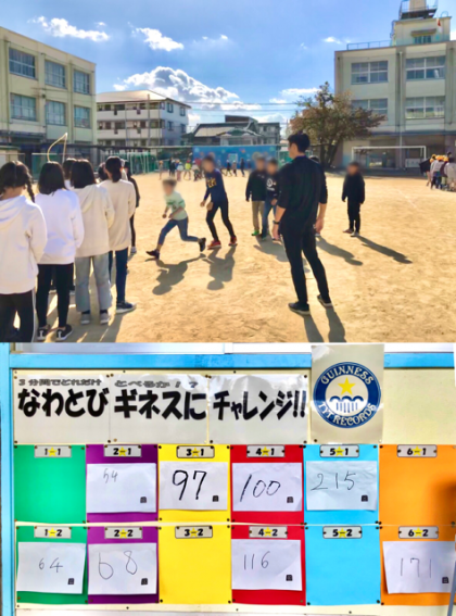 多くの学級がなわとびギネスに