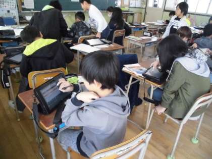 その学習を生かし、今度は自分が興味を持った『和の文化』について調べて発表するという学習に取り組んでいます。子供たちを見ていると、着物や寿司、花火などを、インターネットや本、パンフレットなどを用いて調べ、メモを取っていました。
