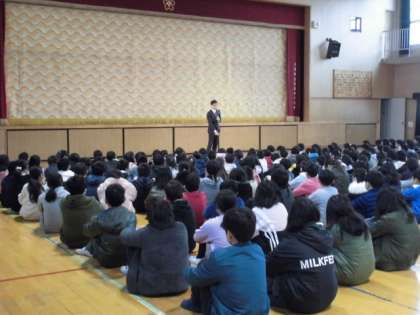 まず、講堂に集合して、3学期の始業式を行いました。その後、学年集会を視聴覚室で行い、3学期の見通しを確認しました。