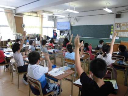 登校すると、まず正門で消毒と検温。その後、教室に入り、学級開きや学年開きを行いました。1〜5年生については、先週まで分散登校でしたので、クラス、学年がそろうのは、新しい学年が始まって初めて。そこで、本来なら4月に行うことを本日行いました。