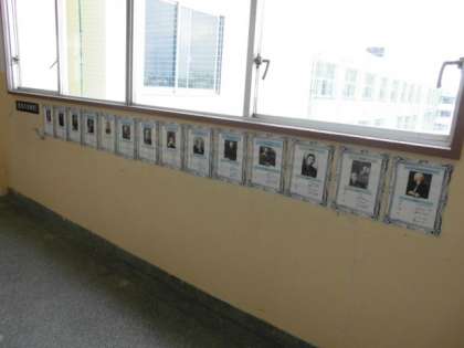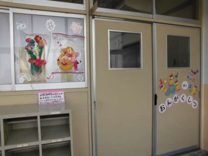 その1つが、去年まで代表委員会などで使用していたML教室の大改造。現在は、以前少し紹介しましたが、第2音楽室として使用しています。その入り口が給食調理員さんの協力で写真のようになりました。廊下には、音楽室と言えば必ずある作曲家達の写真。音楽の学習をする環境が整いました。