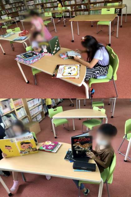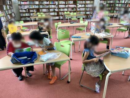 学校図書館で静かに本を読みました。