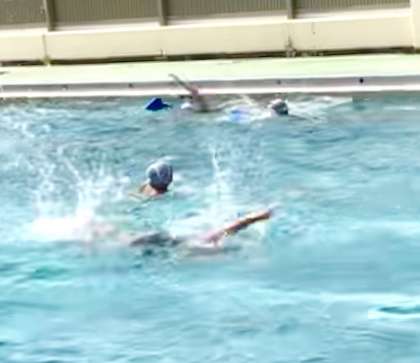 泳ぐ練習をしています。