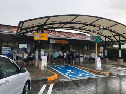 多気サービスエリアは雨ですが、志摩自然学校の天候は回復傾向とのことです。