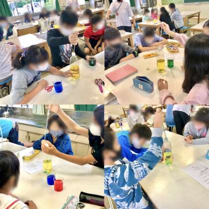 油に色水を入れる実験、
