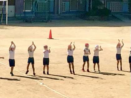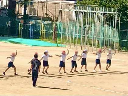 運動会の演技の練習を
