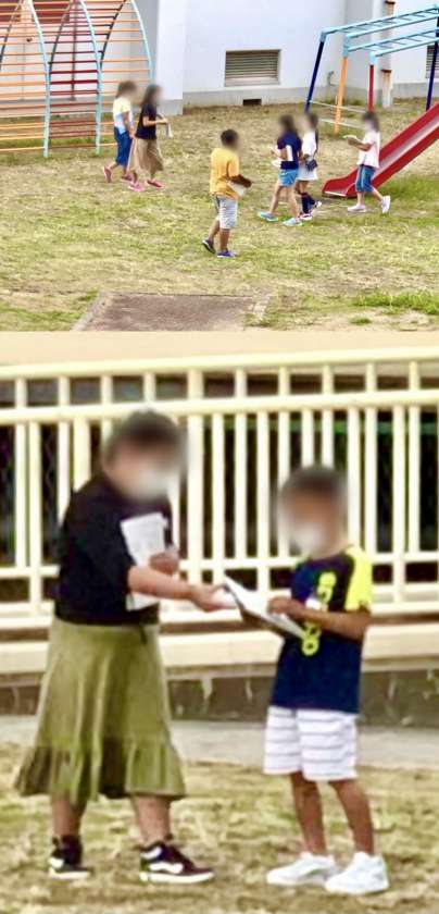 比べる方法を考え、実際に中庭へ出て