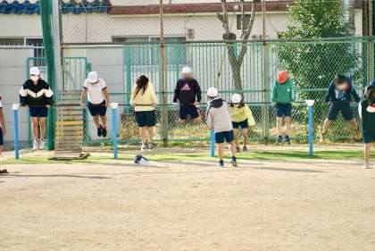 運動場に出て