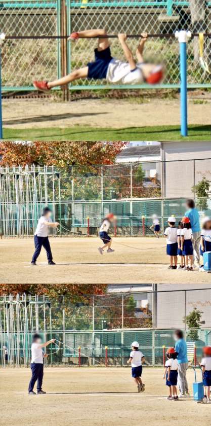 短縄や鉄棒の練習にも