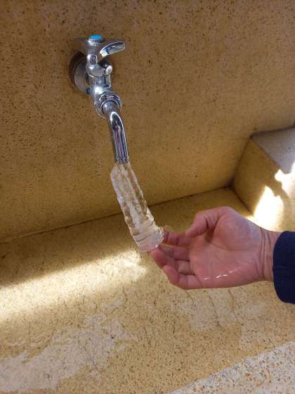昨日、給食室の前の水道の水も凍っていました。