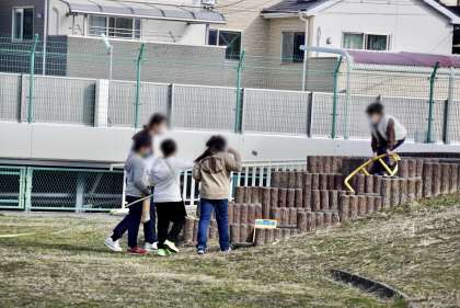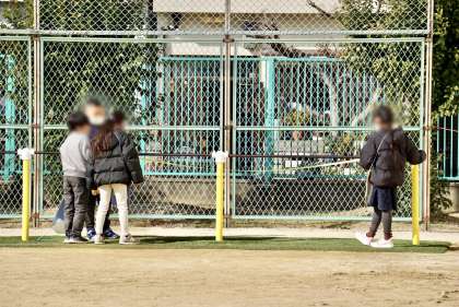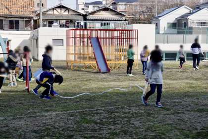 運動場や中庭に出て