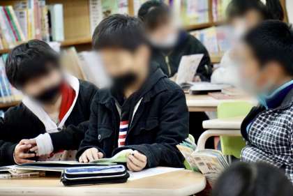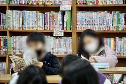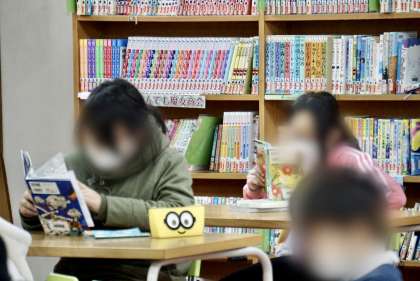 学校図書館で熱心に