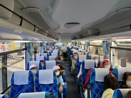 バスの中では、DVDを視聴しています。