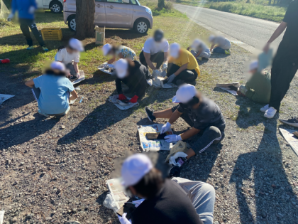 避難訓練を終え、焼き板を磨きました。