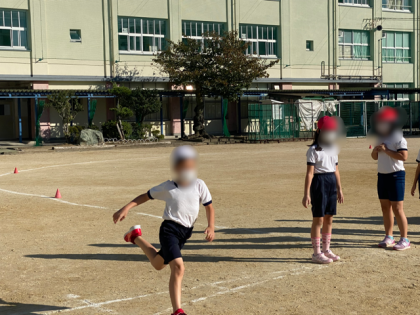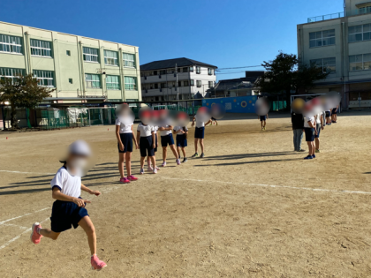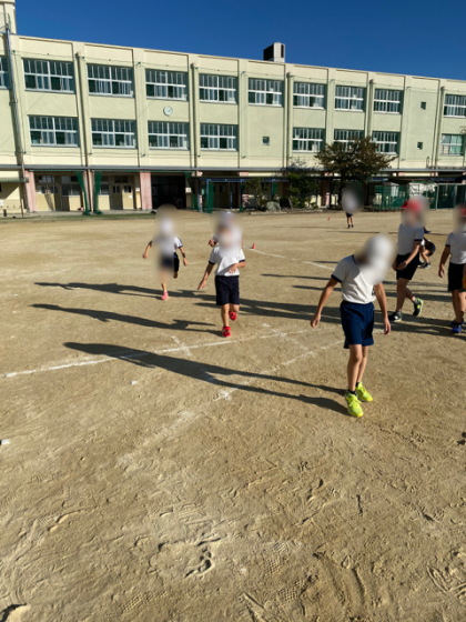 午後からは体育。運動会で行うリレーを練習しました。バトンパスや、カーブの走り方を学習しました。