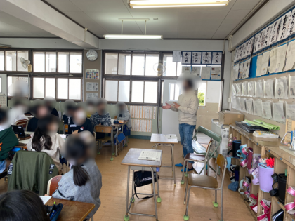 国語の発表を、PTA会長様に参観いただいて、感想をもらいました。パワーポイントが上手にできていること、これからの社会ではこのように活動できるようなスキルが必要であることなども教えていただきました。
