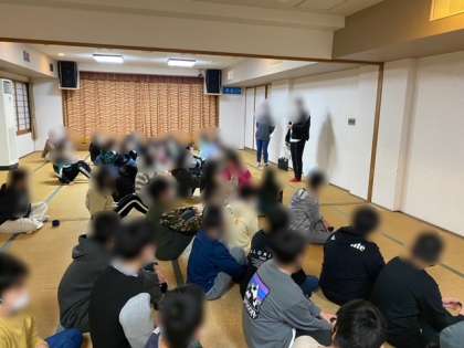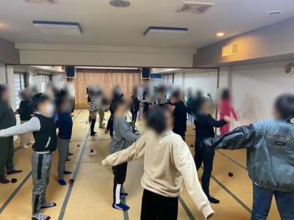 外は雨ですので、室内で朝の集いをしました。体操をして身体を起こしました。