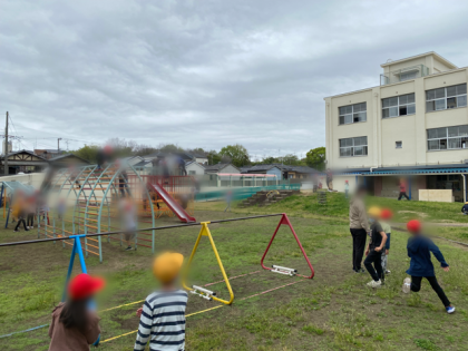 低学年の子どもたちが中庭で遊んでいます。