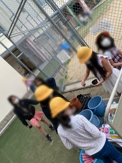 3年生の理科では、マリーゴールドの種を一人ずつ植えました。