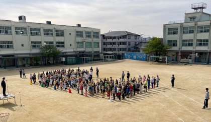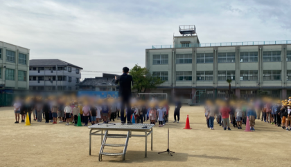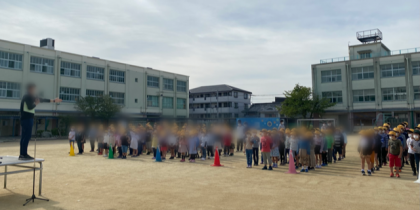 今朝は運動場で児童集会を行いました。とても上手に並べていました。話を聞く姿勢もとてもよかったです。