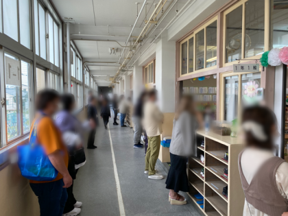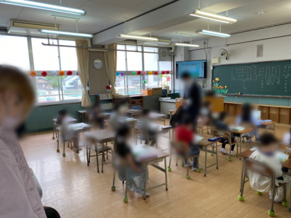 1年生の様子です。廊下で見守るお家の方も、教室で学習する子どもたちも、ワクワク、ドキドキしていますね。