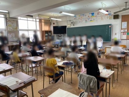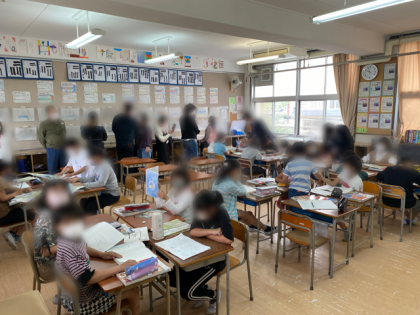 4年生の学習の様子です。グループで話し合ったり、前に出て発表したりしています。みんな頑張っています。