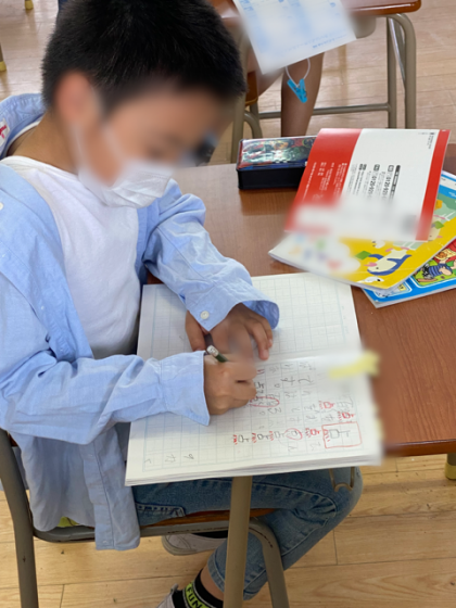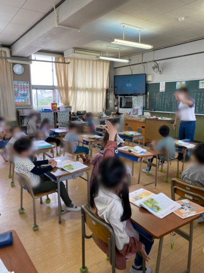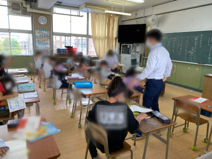 先生の問いかけに、手がたくさんあがっています。ノートも丁寧に書けています。