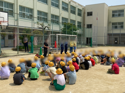 次の時間は、中学年(3・4年生)が交通安全指導を行いました。