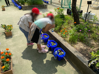 1年生は、朝顔の種から育てています。毎日水やりや観察をしています。
