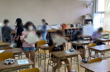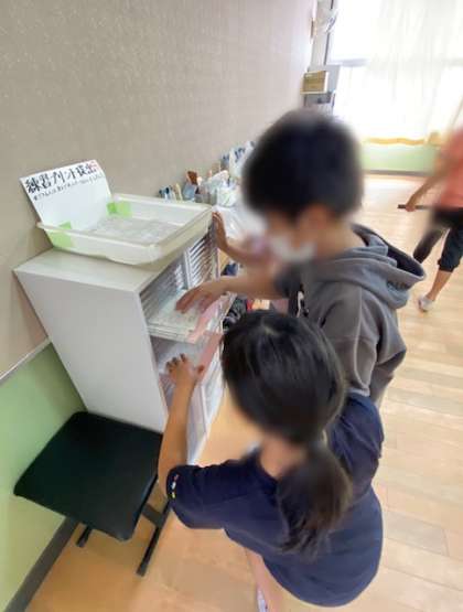 低・中・高学年学習室の前にあるレターケースに、それぞれの級のプリントがあります。自分で選んで練習し、昇級試験を受けていきます。始まったばかりですので、「どの級から挑戦しようかな」みんな考えて取り組んでいます。