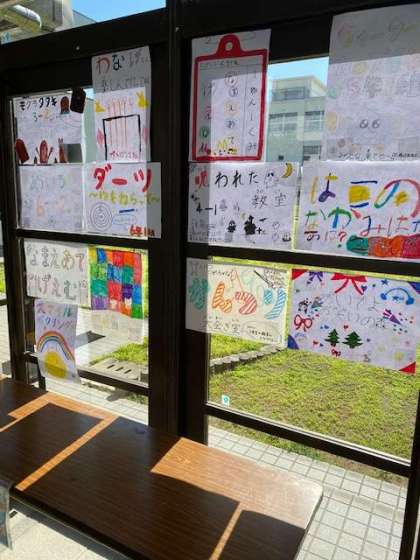 東小フェスティバルに向けて、各学級のお店が決まりました。玄関にポスターがはられています。登校してきた子が見て、楽しみにしていました。さてどんなお店になるんでしょうか。