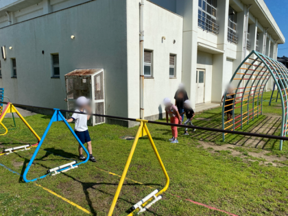 さわやかな朝に、異学年での交流が行われました。