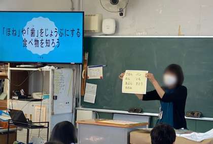 今日は3年生が栄養指導を受けています。栄養教諭の講師の先生に来ていただいて、学習しています。