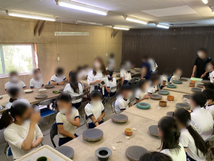 宗陶苑の方にあいさつをして、陶芸体験がスタートしました。
