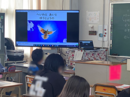 「青いそらは」の歌も、みんなで歌詞の意味をおさえて静かに聴きました。