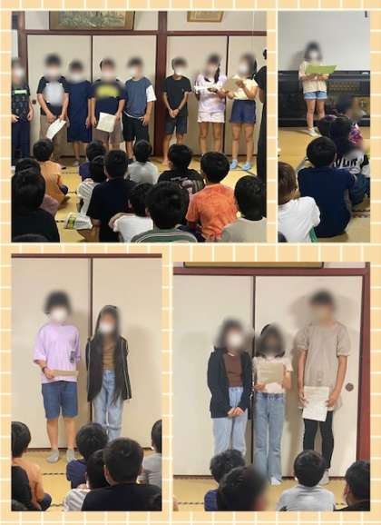 朝の集いは、室内で行いました。
