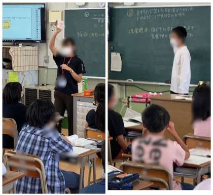 教育実習生が、頑張って授業をしています。