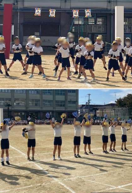 3年生は、カッコイイポーズから団体演技が始まりました。