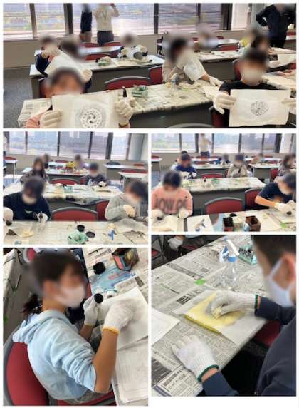 今日、5年生は社会見学で歴史博物館に行きました。1組と2組にわかれて、考古学体験と難波宮跡の見学をしました。